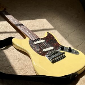 fender jp back in 2001 or something, not sure but love the aesthetics of mustang and sound so much.
