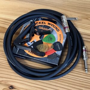 D’Addario XSE mainly. and some elixirs. Dunlop picks and capo. hd600, uavolt276, providence cables.